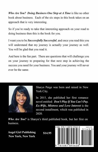 Who Are You? Doing Business One Step at A Time is like no other book about business. Each of the six steps in this book takes on an approach that is very interesting. So if you're ready to take that interesting approach on your road to doing business then this is the book for you. I want you to be Successfully Successful, and once you read this you will understand that my journey is actually your journey as well. You will be glad that you read it. And here is the fun part. There are questions that will challenge you on your journey to preparing for that next step in achieving the success you need for your business. You and your journey will never ever be the same.