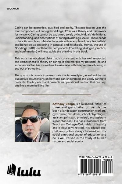Caring can be quantified, qualified and quirky. This publication uses the four components of caring (Noddings, 1984) as a theory and framework for my work. Caring cannot be explained solely by individuals' definitions, understanding, and descriptions of caring (Noddings, 2005). There needs to be a thorough and detailed analysis with examples of people's beliefs' and behaviors about caring in general, and in schools. Hence, the use of Noddings (1984) four theoretic components (modeling, dialogue, practice, and confirmation) will help guide the thinking in this book. This work has obtained data that is consistent with her well respected and comprehensive theory on caring. It also merges my personal life and experiences that has moved me to associate with this premise of caring in and out of schooling. The goal of this book is to present data that is quantifying, as well as informal qualitative assumptions on how one can understand and apply caring to one's life. The hope is that it presents an operational method that can help one live a more fulfilling life.