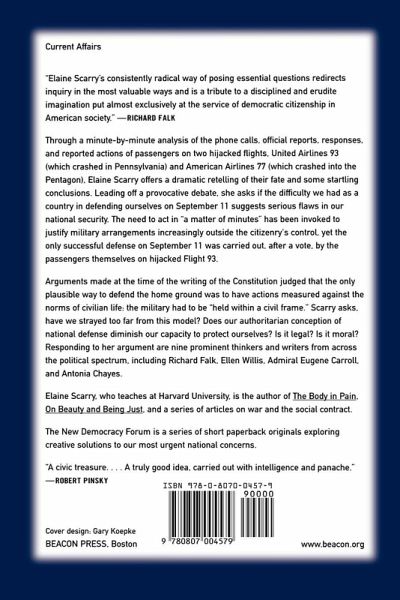 'Elaine Scarry's consistently radical way of posing essential questions redirects inquiry in the most valuable ways, a tribute to a disciplined and erudite imagination put almost exclusively at the service of democratic citizenship in American society.' -Richard Falk Through a minute-by-minute analysis of the phone calls, official reports, responses, and reported actions of passengers on two hijacked flights, United Airlines 93 (which crashed in Pennsylvania) and American Airlines 77 (which crashed into the Pentagon), Elaine Scarry offers a dramatic retelling of their fate and some startling conclusions. Leading off a provocative debate, she asks if the difficulty we had as a country in defending ourselves on September 11 suggests serious flaws in our national security. The need to act in'a matter of minutes' has been invoked to justify military arrangements increasingly outside the citizenry's control, yet the only successful defense on September 11 was carried out, after a vote, by the passengers themselves on hijacked Flight 93. Arguments made at the time of the writing of the Constitution judged that the only plausible way to defend the home ground was to have actions measured against the norms of civilian life: the military had to be'held within a civil frame.' Scarry asks, have we strayed too far from this model? Does our authoritarian conception of national defense diminish our capacity to protect ourselves? Is it legal? Is it moral? Responding to her argument are nine prominent thinkers and writers from across the political spectrum, including Richard Falk, Ellen Willis, Admiral Eugene Carroll, and Antonia Chayes. Elaine Scarry, Walter M. Cabot Professor of Aesthetics and the General Theory of Value at Harvard University, is the author of The Body in Pain, On Beauty and Being Just, Dreaming by the Book, and Resisting Representation.