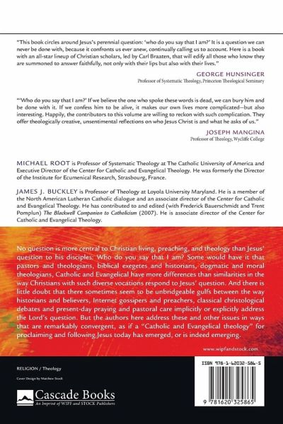No question is more central to Christian living, preaching, and theology than Jesus' question to his disciples: Who do you say that I am? Some would have it that pastors and theologians, biblical exegetes and historians, dogmatic and moral theologians, Catholic and Evangelical have more differences than similarities in the way Christians with such diverse vocations respond to Jesus' question. And there is little doubt that there sometimes seem to be unbridgeable gulfs between the way historians and believers, Internet gossipers and preachers, classical christological debates and present-day praying and pastoral care implicitly or explicitly address the Lord's question. But the authors here address these and other issues in ways that are remarkably convergent, as if a "Catholic and Evangelical theology" for proclaiming and following Jesus today has emerged, or is indeed emerging.