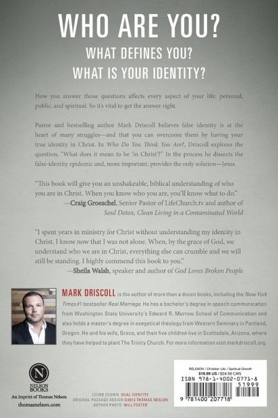In Who DoYou Think You Are?, Driscoll explores the question, "What does it mean to be 'in Christ'?" In the process he dissects the false-identity epidemic and, more important, provides the only solution---Jesus.