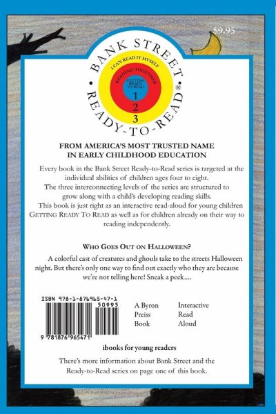 A colorful cast of creatures and ghouls take to the streets Halloween night. But there's only one way to find out exactly who they are because we're not telling here! Sneak a peek…. About¿The¿Bank¿Street Ready-To-Read Series More than seventy years of educational research and innovative teaching have given the Bank Street College of Education the reputation as America's most trusted name in early childhood education. Because no two children are exactly alike in their development, we have designed the Bank Street Ready-to-Read series in three levels to accommodate the individual stages of reading readiness of children ages four through eight. • Level 1: Getting Ready To Read- (Pre-K to Grade 1) Books are perfect for reading aloud with children who are getting ready to read or are just beginning to read words or phrases. • Level 2: Reading Together-(Grades 1 to 3) Books are written especially for children who are on their way to reading independently but who may need help. • Level 3: I Can Read It Myself-(Grades 2 to 3) Books are designed for children able to read on their own. They also can be enjoyed as read-alouds. Our three levels make it easy to select the books most appropriate for a child's development and enable him or her to grow with the series step by step. The Bank Street Ready-to-Read books also overlap and reinforce each other, further encouraging the reading process. We feel that making reading fun and enjoyable is the single most important thing that you can do to help children become good readers. And we hope you'll be a part of Bank Street's long tradition of learning through sharing. -The Bank Street College of Education