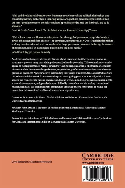 Academics and policymakers frequently discuss global governance but they treat governance as a structure or process, rarely considering who actually does the governing. This volume focuses on the agents of global governance: 'global governors'. The global policy arena is filled with a wide variety of actors such as international organizations, corporations, professional associations, and advocacy groups, all seeking to 'govern' activity surrounding their issues of concern. Who Governs the Globe? lays out a theoretical framework for understanding and investigating governors in world politics. It then applies this framework to various governors and policy arenas, including arms control, human rights, economic development, and global education. Edited by three of the world's leading international relations scholars, this is an important contribution that will be useful for courses, as well as for researchers in international studies and international organizations.