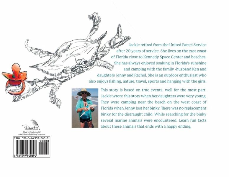 This story is based on true events, well for the most part. Author Jackie Anson wrote this story when her daughters were very young. They were camping near the beach on the west coast of Florida when Jenny lost her binky. There was no replacement binky for the distraught child. While searching for the binky several marine animals were encountered. Learn fun facts about these animals as you travel towards a happy ending.