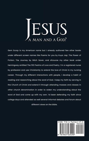 Gem Scorp is my American name but I already authored few other books under different screen names like Poems for you by Kuya Jap; The Power of Fiction; The Journey by Nitch Saver, and of course my other book under Hemingway entitled The 150 Psalms of Love and Poetry. I'm a registered nurse by profession and use Christianity to extend the love of Christ in my nursing career. Through my different interactions with people, I develop a habit of reading and researching about the word of God. I keep my faith by serving in the Church of Christ and extend it through attending masses and classes in other church denomination in order to widen my understanding about the word of God and come up with my own. I'd been defending my faith since college days and attended as well several informal debates and forum about different views on the bible.