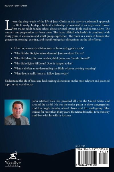 Learn the deep truths of the life of Jesus Christ in this easy-to-understand approach to Bible study. In-depth biblical scholarship is presented in an easy-to-use format that makes adult Sunday school classes or small-group Bible studies come alive. The research and preparation has been done. The latest biblical scholarship is combined with thirty years of classroom and small group experience. The result is a series of lessons that generate interesting, exciting, and transforming class discussions on the life of Jesus. • How do preconceived ideas keep us from seeing plain truth? • Why did the disciples misunderstand Jesus so often? Do we? • Why did Mary, his own mother, think Jesus was "beside himself?" • Why did religion kill Jesus? Does it happen today? • What is the key to understanding the Bible without twisting meaning? • What does it really mean to follow Jesus today? Understand the life of Jesus and lead exciting discussions on the most relevant and practical topic in the world today.