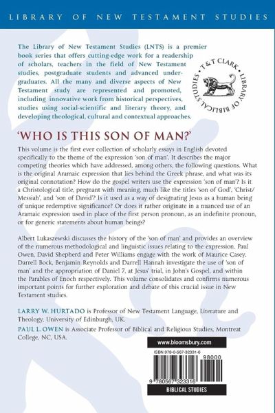 This book is the first ever collection of scholarly essays in English devoted specifically to the theme of the expression 'son of man'. It describes the major competing theories which have addressed questions such as: What is the original Aramaic expression which lies behind the Greek phrase, and what was its original connotation? How do the gospel writers use the expression 'son of man'? Is it a Christological title, pregnant with meaning, much like the titles son of God, Christ/Messiah, and son of David? Is it used as a way of designating Jesus as a human being of unique redemptive significance? Or does it rather originate in a nuanced use (obscured in Greek translation) of an Aramaic expression used in place of the first person pronoun, as an indefinite pronoun, or for generic statements about human beings? Larry Hurtado and Paul Owen have brought together contributing scholars on the basis of their expertise in Aramaic, historical Jesus research, the son of man debate itself, and related fields of research.