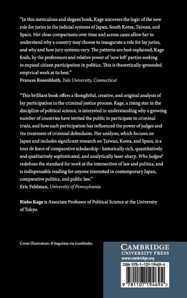 The delivery of justice is a core function of the modern state. The recent introduction of jury/lay judge systems for criminal trials in Japan, South Korea, Spain, and perhaps soon Taiwan represents a potentially major reform of this core function, shifting decision making authority from professional judges to ordinary citizens. But the four countries chose to empower their citizens to markedly different degrees. Why? Who Judges? is the first book to offer a systematic account for why different countries design their new jury/lay judge systems in very different ways. Drawing on detailed theoretical analysis, original case studies, and content analysis of fifty years of Japanese parliamentary debates, the book reveals that the relative power of 'new left'-oriented political parties explains the different magnitudes of reform in the four countries. Rieko Kage's vital new study opens up an exciting new area of research for comparative politics and socio-legal studies.
