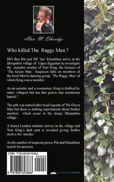 Who killed The Raggy Men? DCI Ben Pitt and DS 'Jaz' Khunkhun arrive at the Shropshire village of Upper Egginton to investigate the macabre murder of Tom King, the licensee of 'The Green Man'. Suspicion falls on members of the local Morris dancing group, 'The Raggy Men' of which King was a member. As an outsider and a womaniser, King is disliked by many villagers but has this grown into murderous hatred? The pub was named after local legends of The Green Man but there is nothing supernatural about further murders which occur in the sleepy Shropshire village. A feared London mobster arrives in the village and Tom King's dark past is revealed giving further motive for murder. As the number of suspects grows, Pitt and Khunkhun search for answers.