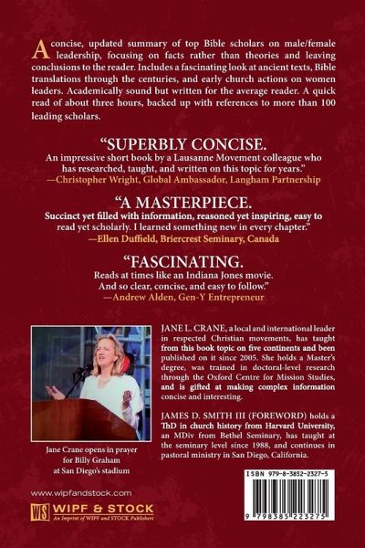 A concise, updated summary of top Bible scholars on male/female leadership, focusing on facts rather than theories and leaving conclusions to the reader. Includes a fascinating look at ancient texts, Bible translations through the centuries, and early church actions on women leaders. Academically sound but written for the average reader. A quick read of about three hours, backed up with references to more than 100 leading scholars.
