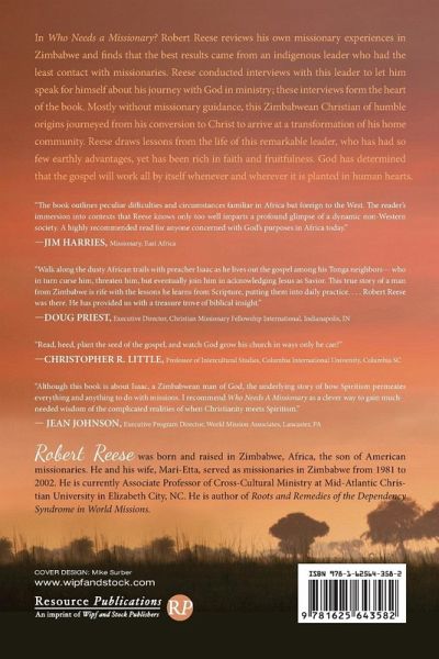 In Who Needs a Missionary? Robert Reese reviews his own missionary experiences in Zimbabwe and finds that the best results came from an indigenous leader who had the least contact with missionaries. Reese conducted interviews with this leader to let him speak for himself about his journey with God in ministry; these interviews form the heart of the book. Mostly without missionary guidance, this Zimbabwean Christian of humble origins journeyed from his conversion to Christ to arrive at a transformation of his home community. Reese draws lessons from the life of this remarkable leader, who has enjoyed so few earthly advantages, yet has been rich in faith and fruitfulness. God has determined that the gospel will work all by itself whenever and wherever it is planted in human hearts.