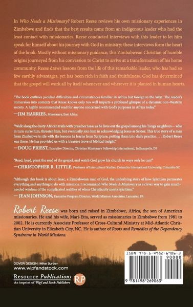 In Who Needs a Missionary? Robert Reese reviews his own missionary experiences in Zimbabwe and finds that the best results came from an indigenous leader who had the least contact with missionaries. Reese conducted interviews with this leader to let him speak for himself about his journey with God in ministry; these interviews form the heart of the book. Mostly without missionary guidance, this Zimbabwean Christian of humble origins journeyed from his conversion to Christ to arrive at a transformation of his home community. Reese draws lessons from the life of this remarkable leader, who has enjoyed so few earthly advantages, yet has been rich in faith and fruitfulness. God has determined that the gospel will work all by itself whenever and wherever it is planted in human hearts.
