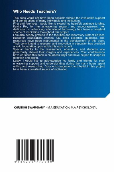 This book would not have been possible without the invaluable support and contributions of many individuals and institutions.First and foremost, I would like to extend my heartfelt gratitude to Miss. Kavita Roy for her unwavering support and encouragement. Her dedication to advancing educational technology has been a constant source of inspiration throughout this project.I am also deeply grateful to the faculties and laboratory staff at EdTech Research Association, Arizona, US. Their expertise, guidance, and resources have been instrumental in the development of this book. Their commitment to research and innovation in education has provided a solid foundation upon which this work is built.Special thanks to the researchers, educators, and students who generously shared their insights and experiences. Your contributions have enriched this book in countless ways and have helped to shape its direction and depth.Lastly, I would like to acknowledge my family and friends for their unwavering support and understanding during the many hours spent writing and researching. Your encouragement and belief in this project have been a constant source of motivation.