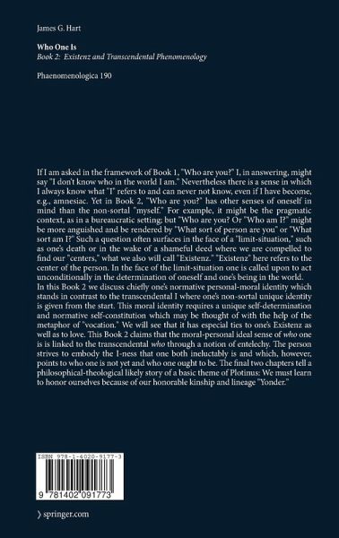 From the reviews: "James G. Hart's ... presents the results of several decades of research on self- and personhood, combining transcendental phenomenology and existential philosophy. ... focuses on the core of the personal 'I.' Hart calls this core Existenz. ... Hart has undoubtedly given us a thought-provoking study that enriches many ongoing debates and deserves increasing scholarly attention.Its two volumes belong to the most impressive, comprehensive, and innovative works in this field. I appreciate the breadth and insight of this work and heartily recommend it to anyone who wishes to learn more about who one is ... ." (Claudia Welz, Philosophy Today, 2010) " In this large two-volume book, James Hart offers the reader an insightful and comprehensive treatment of the perplexing manner in which we, each of us, are aware of our own selves. The book is comprehensive in two senses: in regard to the topics treated, and in regard to the authorities invoked. (...) His book could serve as a reference work for someone who wished to explore this topic and wanted to know how it has been treated in philosophical and theological traditions other than his own." (Robert Sokolowski, School of Philosophy, Catholic University of America)