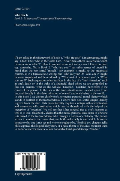 From the reviews: "James G. Hart's ... presents the results of several decades of research on self- and personhood, combining transcendental phenomenology and existential philosophy. ... focuses on the core of the personal 'I.' Hart calls this core Existenz. ... Hart has undoubtedly given us a thought-provoking study that enriches many ongoing debates and deserves increasing scholarly attention.Its two volumes belong to the most impressive, comprehensive, and innovative works in this field. I appreciate the breadth and insight of this work and heartily recommend it to anyone who wishes to learn more about who one is ... ." (Claudia Welz, Philosophy Today, 2010) " In this large two-volume book, James Hart offers the reader an insightful and comprehensive treatment of the perplexing manner in which we, each of us, are aware of our own selves. The book is comprehensive in two senses: in regard to the topics treated, and in regard to the authorities invoked. (...) His book could serve as a reference work for someone who wished to explore this topic and wanted to know how it has been treated in philosophical and theological traditions other than his own." (Robert Sokolowski, School of Philosophy, Catholic University of America)