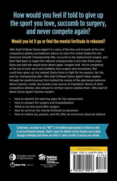 Darla Davies is the only competitive athlete and ballroom dancer to claim the United States Pro Am American Smooth Championship title, succumb to hip replacement surgery, and then fight back to regain the national championship in less than three years. Darla continues to win championship titles across the nation each year. Darla, along with her dance partner and husband Jim Maranto, has appeared on PBS television¿s Americäs Ballroom Challenge and they have visited with contestants on the set of Dancing with the Stars. The couple maintains extensive relationships in the national ballroom dancing market while maintaining a residence in Charlottesville, Virginia where they still have friends and a dance coach. Most of Darla and Jim¿s time is spent in the Phoenix and Scottsdale, Arizona area and traveling around the country to competitions.