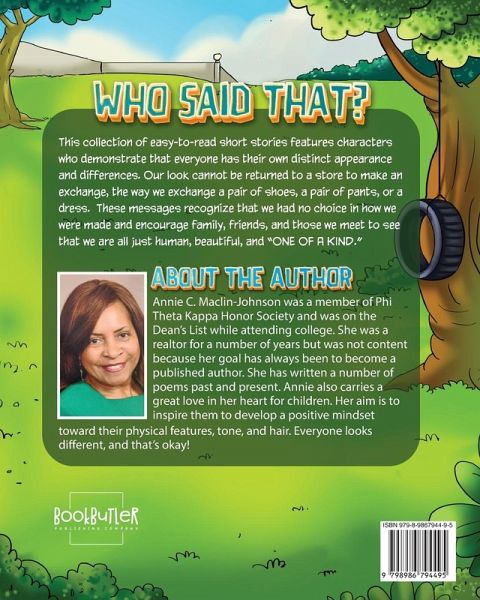 This collection of easy-to-read short stories features characters who demonstrate that everyone has their own distinct appearance and differences. Our look cannot be returned to a store to make an exchange, the way we exchange a pair of shoes, a pair of pants, or a dress. These messages recognize that we had no choice in how we were made and encourage family, friends, and those we meet to see that we are all just human, beautiful, and "ONE OF A KIND."