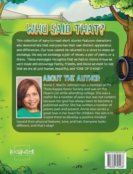 This collection of easy-to-read short stories features characters who demonstrate that everyone has their own distinct appearance and differences. Our look cannot be returned to a store to make an exchange, the way we exchange a pair of shoes, a pair of pants, or a dress. These messages recognize that we had no choice in how we were made and encourage family, friends, and those we meet to see that we are all just human, beautiful, and "ONE OF A KIND."