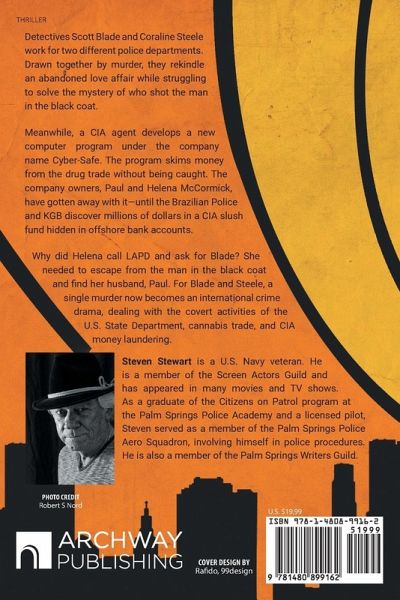 Detectives Scott Blade and Coraline Steele work for two different police departments. Drawn together by murder, they rekindle an abandoned love affair while struggling to solve the mystery of who shot the man in the black coat. Meanwhile, a CIA agent develops a new computer program under the company name Cyber-Safe. The program skims money from the drug trade without being caught. The company owners, Paul and Helena McCormick, have gotten away with it-until the Brazilian Police and KGB discover millions of dollars in a CIA slush fund hidden in offshore bank accounts. Why did Helena call LAPD and ask for Blade? She needed to escape from the man in the black coat and find her husband, Paul. For Blade and Steele, a single murder now becomes an international crime drama, dealing with the covert activities of the U.S. State Department, cannabis trade, and CIA money laundering.
