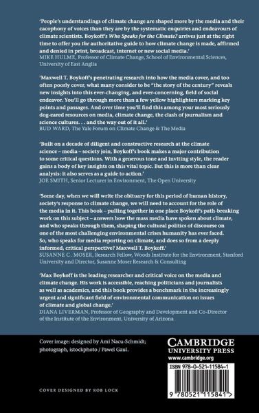 'People's understandings of climate change are shaped more by the media and their cacophony of voices than they are by the systematic enquiries and endeavours of climate scientists. Boykoff's Who Speaks for the Climate? arrives just at the right time to offer you the authoritative guide to how climate change is made, affirmed and denied in print, broadcast, internet or new social media.' Mike Hulme, University of East Anglia