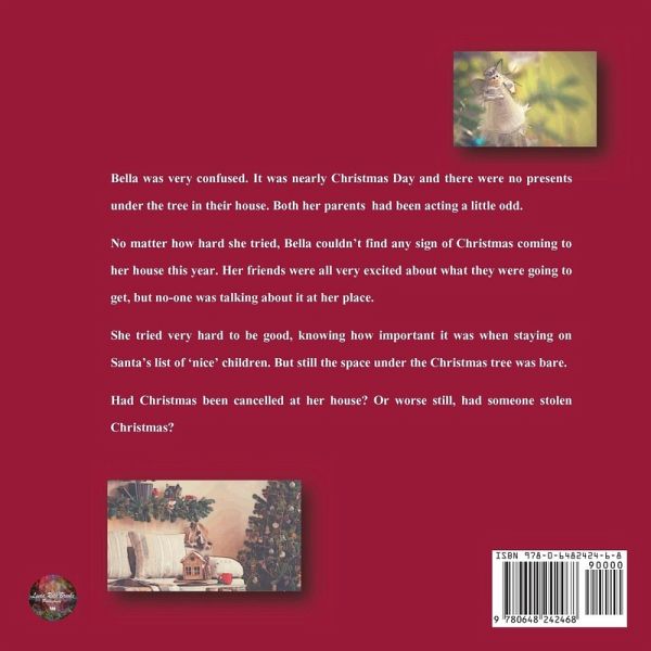 Bella was very confused. It was nearly Christmas Day and there were no presents under the tree in their house. Both her parents had been acting a little odd. No matter how hard she tried, Bella couldn't find any sign of Christmas coming to her house this year. Her friends were all very excited about what they were going to get, but no-one was talking about it at her place. She tried very hard to be good, knowing how important it was when staying on Santa's list of 'nice' children. But still the space under the Christmas tree was bare. Had Christmas been cancelled at her house? Or worse still, had someone stolen Christmas?