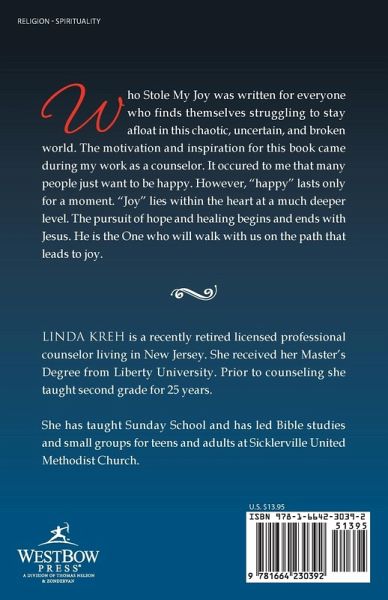 Who Stole My Joy was written for everyone who finds themselves struggling to stay afloat in this chaotic, uncertain, and broken world. The motivation and inspiration for this book came during my work as a counselor. It occured to me that many people just want to be happy. However, "happy" lasts only for a moment. "Joy" lies within the heart at a much deeper level. The pursuit of hope and healing begins and ends with Jesus. He is the One who will walk with us on the path that leads to joy.