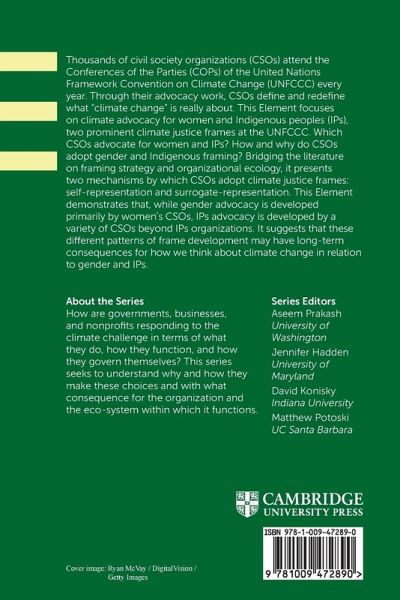 Bridging the literature on framing strategy and organizational ecology, this Element presents two mechanisms by which CSOs adopt climate justice frames: self-representation and surrogate-representation. It also suggests that these different patterns of frame development may have a long-term consequence for how we think about climate change.