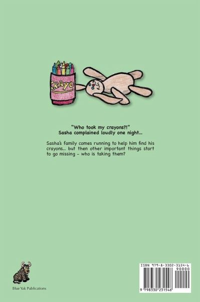 Sasha's family comes running to help him find his crayons... looks like it's time for another silly story from Dad. But the story and lesson backfire as other important things start to go missing - who is taking them?
