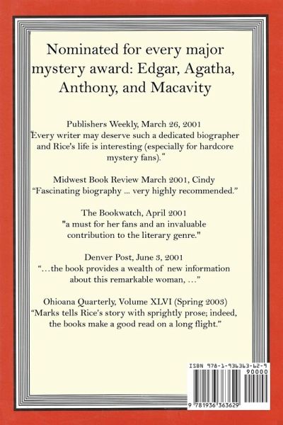 Craig Rice, the author of fourteen novels, countless short stories, and a number of true crime pieces, once rivaled Agatha Christie in sales. She was on the cover of Time Magazine in 1946. However, the past fifty years have seen her fall into relative obscurity. Rice made for an interesting subject for a biography because nearly every identification point about the author was in dispute: her birth, her real name, her number of marriages, number of children, her canon of fiction, and the cause of her early death. Marks had to wade through years of research to come up with the answers to those questions. Following a trail that went from Venice, Italy to Venice Beach, CA, he talked to a number of her contemporaries, her family, and friends to come up with an engaging book that reminds readers why Rice remains the undisputed queen of the comedic mystery. This book is now available in trade paperback.