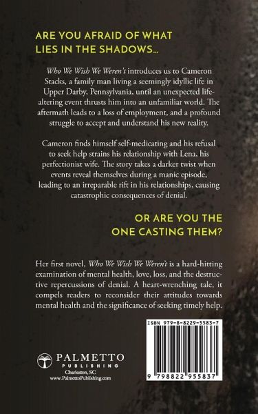 Are you afraid of what lies in the shadows... Who We Wish We Weren't introduces us to Cameron Stacks, a family man living a seemingly idyllic life in Upper Darby, Pennsylvania, until an unexpected life-altering event thrusts him into an unfamiliar world. The aftermath leads to a loss of employment, and a profound struggle to accept and understand his new reality. Cameron finds himself self-medicating and his refusal to seek help strains his relationship with Lena, his perfectionist wife. The story takes a darker twist when events reveal themselves during a manic episode, leading to an irreparable rift in his relationships, causing catastrophic consequences of denial. or are you the one casting them? Her first novel, Who We Wish We Weren't, is a hard-hitting examination of mental health, love, loss, and the destructive repercussions of denial. A heart-wrenching tale, it compels readers to reconsider their attitudes towards mental health and the significance of seeking timely help.