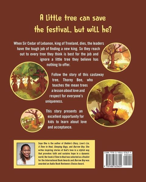 A little tree can save the festival, but will he? When Sir Cedar of Lebanon, king of Treeland, dies, the leaders have the tough job of finding a new king. So they reach out to every tree they think is best for the job and ignore a little tree they believe has nothing to offer. Follow the story of this castaway tree, Thorny Bee, who teaches the mean trees a lesson about love and respect for everyone's uniqueness. This story presents an excellent opportunity for kids to learn about love and acceptance.