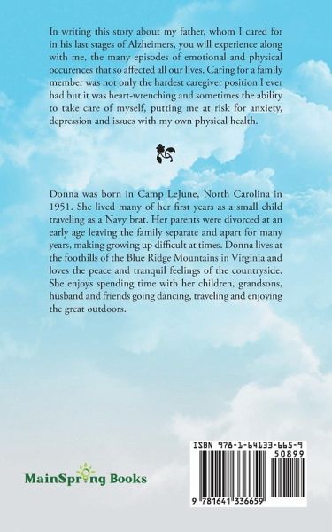 In writing this story about my father, whom I cared for in his last stages of Alzheimers, you will experience along with me, the many episodes of emotional and physical occurrences that so affected all our lives. Caring for a family member was not only the hardest caregiver position I ever had but it was heart-wrenching and sometimes the ability to take care of myself, putting me at risk for anxiety, depression and issues with my own physical health.