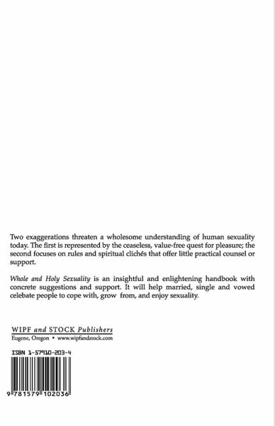 Two exaggerations threaten a wholesome understanding of human sexuality today. The first is represented by the ceaseless, value-free quest for pleasure; the second focuses on rules and spiritual cliches that offer little practical counsel or support. ""Whole and Holy Sexuality"" is an insightful and enlightening handbook with concrete suggestions and support. It will help married, single and vowed celibate people to cope with, grow from, and enjoy sexuality.