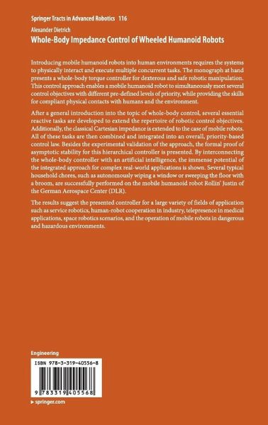 After a general introduction into the topic of whole-body control, several essential reactive tasks are developed to extend the repertoire of robotic control objectives. Additionally, the classical Cartesian impedance is extended to the case of mobile robots. All of these tasks are then combined and integrated into an overall, priority-based control law. Besides the experimental validation of the approach, the formal proof of asymptotic stability for this hierarchical controller is presented.By interconnecting the whole-body controller with an artificial intelligence, the immense potential of the integrated approach for complex real-world applications is shown. Several typical household chores, such as autonomously wiping a window or sweeping the floor with a broom, are successfully performed on the mobile humanoid robot Rollin' Justin of the German Aerospace Center (DLR).