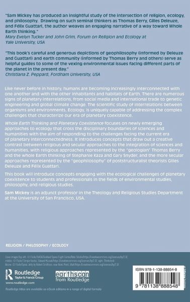 Like never before in history, humans are becoming increasingly interconnected with one another and with the other inhabitants and habitats of Earth. There are numerous signs of planetary interrelations, from social media and international trade to genetic engineering and global climate change. The scientific study of interrelations between organisms and environments, Ecology, is uniquely capable of addressing the complex challenges that characterize our era of planetary coexistence. Whole Earth Thinking and Planetary Coexistence focuses on newly emerging approaches to ecology that cross the disciplinary boundaries of sciences and humanities with the aim of responding to the challenges facing the current era of planetary interconnectedness. It introduces concepts that draw out a creative contrast between religious and secular approaches to the integration of sciences and humanities, with religious approaches represented by the "geologian" Thomas Berry and the whole Earth thinking of Stephanie Kaza and Gary Snyder, and the more secular approaches represented by the "geophilosophy" of poststructuralist theorists Gilles Deleuze and Félix Guattari. This book will introduce concepts engaging with the ecological challenges of planetary coexistence to students and professionals in fields of environmental studies, philosophy and religious studies.