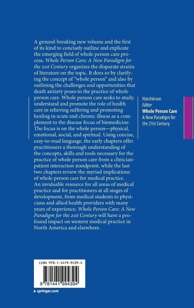 A ground-breaking new volume and the first of its kind to concisely outline and explicate the emerging field of whole person care process, Whole Person Care: A New Paradigm for the 21st Century organizes the disparate strains of literature on the topic. It does so by clarifying the concept of 'whole person' and also by outlining the challenges and opportunities that death anxiety poses to the practice of whole person care. Whole person care seeks to study, understand and promote the role of health care in relieving suffering and promoting healing in acute and chronic illness as a complement to the disease focus of biomedicine. The focus is on the whole person -- physical, emotional, social, and spiritual. Using concise, easy-to-read language, the early chapters offer practitioners a thorough understanding of the concepts, skills and tools necessary for the practice of whole person care from a clinician-patient interaction standpoint, while the last two chapters review the myriad implications of whole person care for medical practice. An invaluable resource for all areas of medical practice and for practitioners at all stages of development, from medical students to physicians and allied health providers with many years of experience, Whole Person Care: A New Paradigm for the 21st Century will have a profound impact on western medical practice in North America and elsewhere.