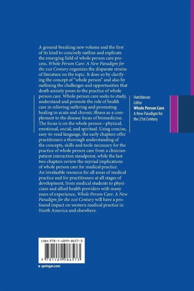 A ground-breaking new volume and the first of its kind to concisely outline and explicate the emerging field of whole person care process, Whole Person Care: A New Paradigm for the 21st Century organizes the disparate strains of literature on the topic. It does so by clarifying the concept of 'whole person' and also by outlining the challenges and opportunities that death anxiety poses to the practice of whole person care. Whole person care seeks to study, understand and promote the role of health care in relieving suffering and promoting healing in acute and chronic illness as a complement to the disease focus of biomedicine. The focus is on the whole person -- physical, emotional, social, and spiritual. Using concise, easy-to-read language, the early chapters offer practitioners a thorough understanding of the concepts, skills and tools necessary for the practice of whole person care from a clinician-patient interaction standpoint, while the last two chapters review the myriad implications of whole person care for medical practice. An invaluable resource for all areas of medical practice and for practitioners at all stages of development, from medical students to physicians and allied health providers with many years of experience, Whole Person Care: A New Paradigm for the 21st Century will have a profound impact on western medical practice in North America and elsewhere.