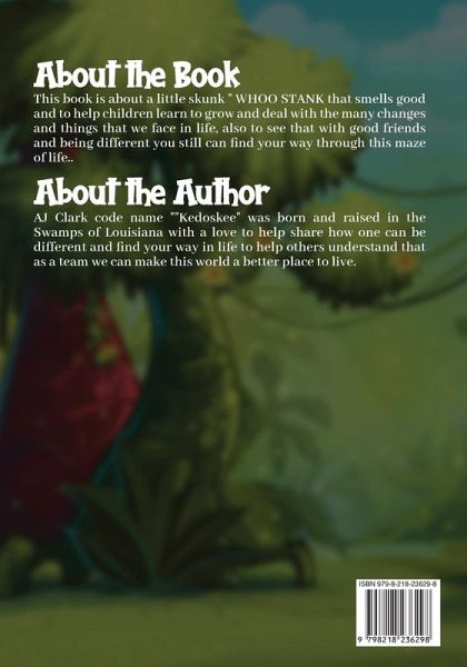 This book is about a little skunk " WHOO STANK " This book will help children learn to grow and deal with the many changes that they face in life, also to learn that with good friends and being different, you still can find your way through this maze of life...