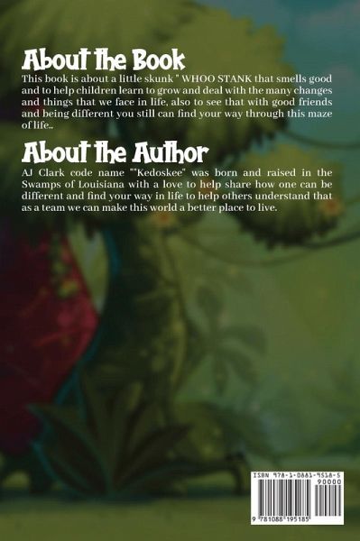 This book is about a little skunk " WHOO STANK that smells good and to help children learn to grow and deal with the many changes and things that we face in life, also to see that with good friends and being different, you still can find your way through this maze of life...