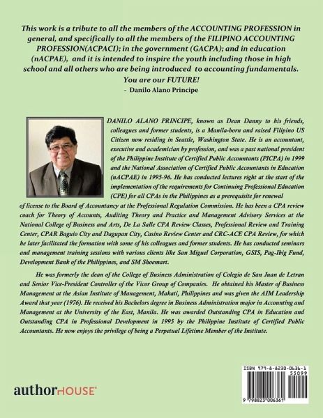 This work is a tribute to all the members of the ACCOUNTING PROFESSION in general, and specifically to all the members of the FILIPINO ACCOUNTING PROFESSION in all the sectors: in public practice (ACPAPP); in commerce and industry (ACPACI); in the government (GACPA); and in education (nACPAE), and it is intended to inspire all accounting students, including those in high school and all others who are being introduced to accounting fundamentals. You are our FUTURE! - Danilo Alano Principe
