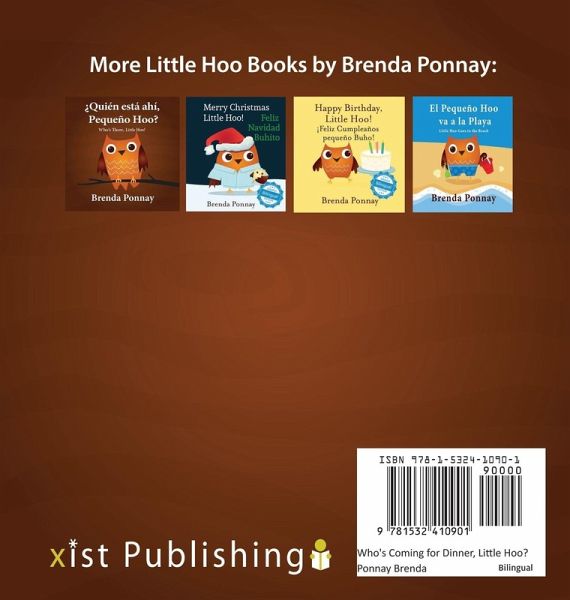 Whooo's There? It's time for Thanksgiving dinner and Little Hoo and his friends and family are gathering for a feast. Introduce your little ones to the fun of bringing a community together for Thanksgiving with Little Hoo and all of his woodland friends. This bilingual Spanish/English picture book is perfect for bilingual families, classrooms and English or Spanish language learners.