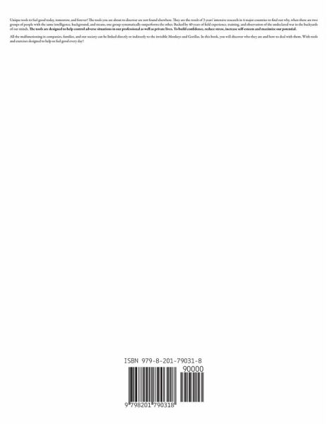 Unique tools to feel good today, tomorrow, and forever! The tools you are about to discover are not found elsewhere. They are the result of 3 years' intensive research in 4 major countries to find out why, when there are two groups of people with the same intelligence, background, and means, one group systematically outperforms the other. Backed by 40 years of field experience, training, and observation of the undeclared war in the backyards of our minds. The tools are designed to help control adverse situations in our professional as well as private lives. To build confidence, reduce stress, increase self-esteem and maximize our potential. All the malfunctioning in companies, families, and our society can be linked directly or indirectly to the invisible Monkeys and Gorillas. In this book, you will discover who they are and how to deal with them. With tools and exercises designed to help us feel good every day!