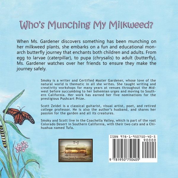 When Ms. Gardener discovers something has been munching on her milkweed plants, she embarks on a fun and educational monarch butterfly journey that enchants both children and adults. From egg to larvae (caterpillar), to pupa (chrysalis) to adult (butterfly), Ms. Gardener watches over her friends to ensure they make the journey safely.