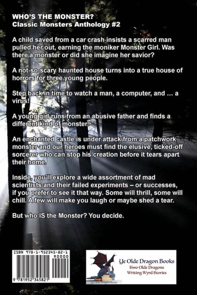 A child saved from a car crash insists a scarred man pulled her out, earning the moniker Monster Girl. Was there a monster or did she imagine her savior? A not-so-scary haunted house turns into a true house of horrors for three young people. Step back in time to watch a man, a computer, and ... a virus! A young girl runs from an abusive father and finds a different kind of monster. An enchanted castle is under attack from a patchwork monster and our heroes must find the elusive, ticked-off sorcerer who can stop his creation before it tears apart their home. Inside, you'll explore a wide assortment of mad scientists and their failed experiments - or successes, if you prefer to see it that way. Some will thrill, some will chill. A few will make you laugh or maybe shed a tear. But who IS the Monster? You decide.
