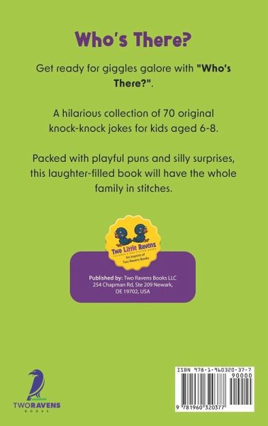 Embark on a hilarious journey with "Who's There?": a captivating collection of 70 creative jokes for kids aged 6-8! This book teems with entertaining wordplay for kids and witty surprises guaranteed to induce laughter and stimulate language development through jokes. Delve into various engaging and age-appropriate wordplay jokes for kids that ensure shared laughter and amusement within the family. These ingeniously constructed jokes are not merely sources of entertainment but also catalysts for children's creativity and linguistic skills enhancement. Get a glimpse of the side-splitting humor that awaits: Knock, knock. Who's there? Olive. Olive who? Olive you and I miss you! Knock, knock. Who's there? Harry. Harry who? Harry up and answer the door! Knock, knock. Who's there? Bee. Bee who? Bee kind and laugh at my joke! Every joke is crafted to trigger chuckles and generate memorable moments of joy between children and their families. Whether you're having a cozy family night in, embarking on a road trip, or enjoying a get-together with friends, these jokes are the perfect recipe for happy faces. "Who's There?" is more than just a book; it's an ideal gift that can be shared by grandparents, parents, and caregivers with their cherished little ones. It paves the way for family bonding through humor, fostering treasured memories painted with the vibrant colors of laughter. Don't miss out on this laughter-filled journey! Order your copy of "Who's There?: 70 Original Knock Knock Jokes For Kids Ages 6-8" now and experience the euphoria of laughter with your children. Brace yourself for an outpouring of giggles, valuable family time, and much fun! Order Your Copy Now and embark on a voyage of language development through jokes and humor with your little ones today!