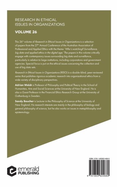 Who's watching? Surveillance, big data and applied ethics in the digital age critically examines the ethical use of surveillance data through the lens of large institutions, including corporations or government agencies, particularly including the collection and use of big data sets.