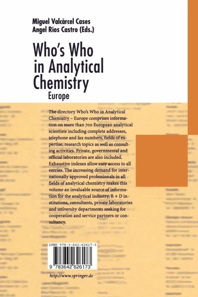 From the reviews: "The directory 'Who is who in Analytical Chemistry' ... comprises information on more than 500 European analytical chemists ... . this first edition will help to promote analytical chemistry in Europe and the increasing demand for internationally approved professionals of analytical sciences makes this volume an invaluable source of information for different research groups ... . this collection can be recommended, especially to those who want to choose a specific research group according to their analytical research lines and specialities." (Advances in Food Science, Vol. 25 (2), 2003)