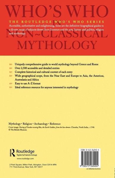 First published in 2001. Part of the Routledge Who's Who series, this is an accessible, authorative and enlightening definitive biographical guides to a range of subjects. Focusing on mythology, this book provides a uniquely comprehensive guide to world mythology beyond Greece and Rome with over 2,500 accessible and detailed entries. A complete historical and cultural context of each entry covering a wide geographical scope, from the Near East and Europe to Asia, the Americas, Australasia and Africa. Presented in an easy to use A-Z format this is the ideal reference resource for anyone interested in mythology.