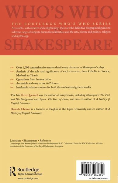 Who's Who in Shakespeare presents a complete and handy guide to the men and women who throng Shakespeare's plays. It provides: * detailed biographical information on each leading figure * analyses of the role and significance of each minor figure * a reliable guide to the huge Shakespearian canon for student and teacher * quotations from famous critics * useful information on some of Shakespeare's sources. From Antonio to Yorick, Macbeth to Mercutio, this book embraces the breadth and depth of the world's most important playwright.