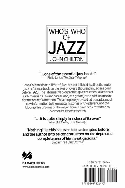 John Chilton's 'Who's Who of Jazz' has established itself as a major jazz reference book on the lives of over a thousand musicians born before 1920. The informative biographies give the essential details of each musician's life and career, and jazz greats jostle with unknowns for the readers attention. This completely revised edition adds much new information to the musical histories of the players, and the biographies of some of the major figures have been rewritten to incorporate recent research.